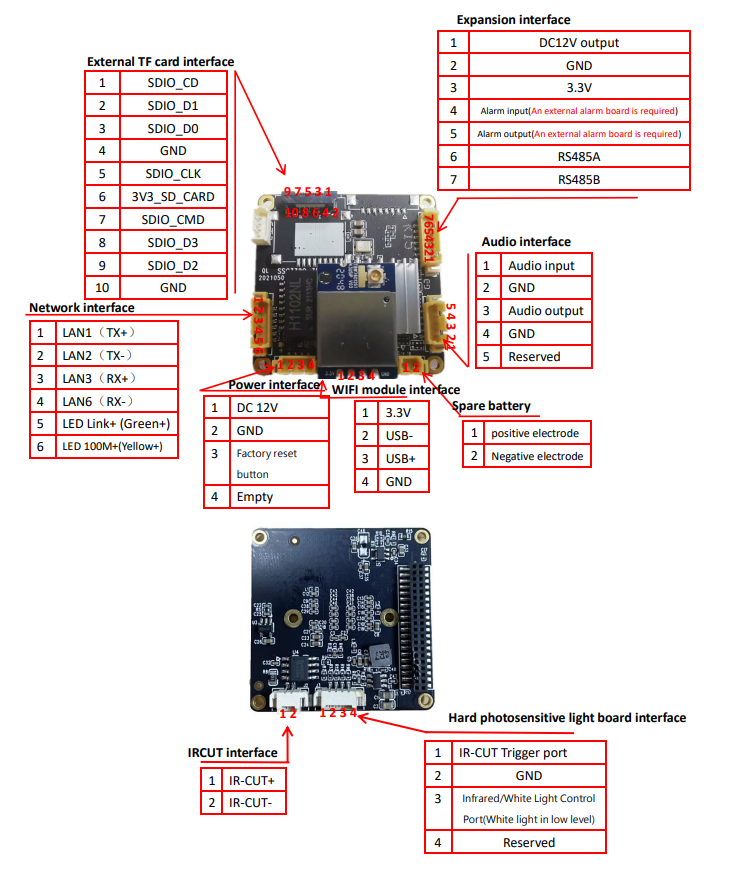 | Audio output | 1CH output, support connection to headphones or amplifiers (requires tail line support) |