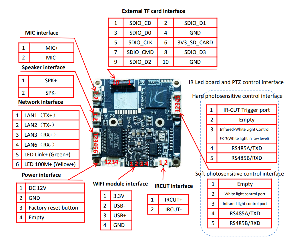 The 5MP HD 38 module adopts a highly integrated SOC processor, with extremely low power consumption and strong stability; Supports H.265 compression algorithms, ensuring image quality while effectively reducing network bandwidth usage; Powerful network functionality, support standard ONVIF protocol, support RTSP, support uploading alarm images to FTP servers, sending alarm images to E‐Mail, and support mobile phone remote monitoring;
