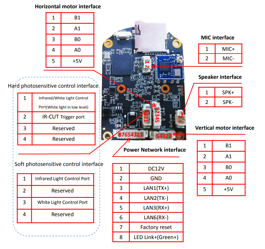 | Audio output | 1CH Output, connect to the speaker directly |