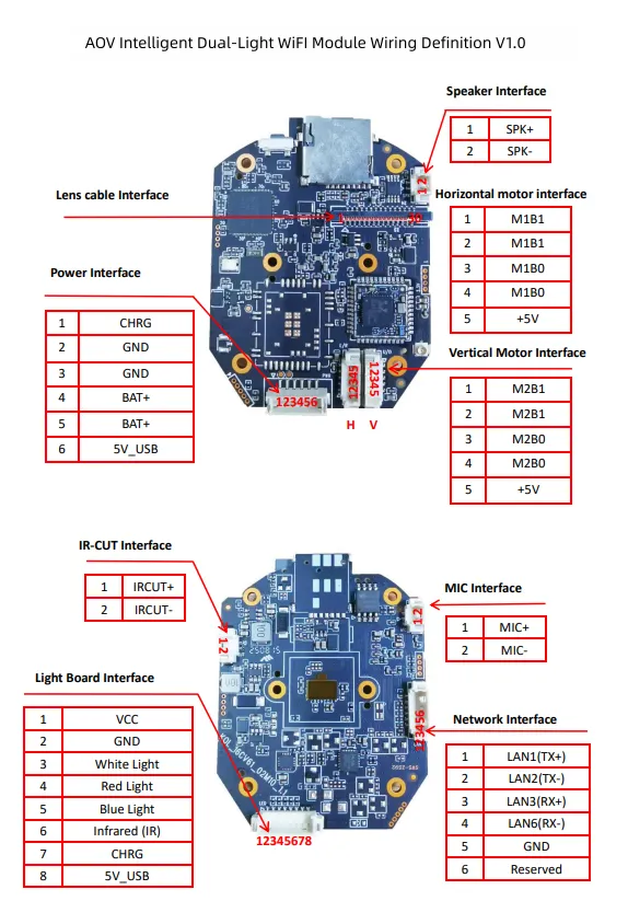 The 8MP AOV intelligent dual-light module, featuring an embedded LINUX system and a 8MP low-light sensor, delivers a max resolution of 3840x2160. It supports H.265/G.711 encoding and customizable bitrates. In AOV mode, it records at 1fps or 0.5fps (0.22W power), switching to 15fps under full activation. Storage options include TF cards, FTP server and cloud storage, with two-way audio and optional Dual-band Bluetooth WiFi(2.4G/5.8G).