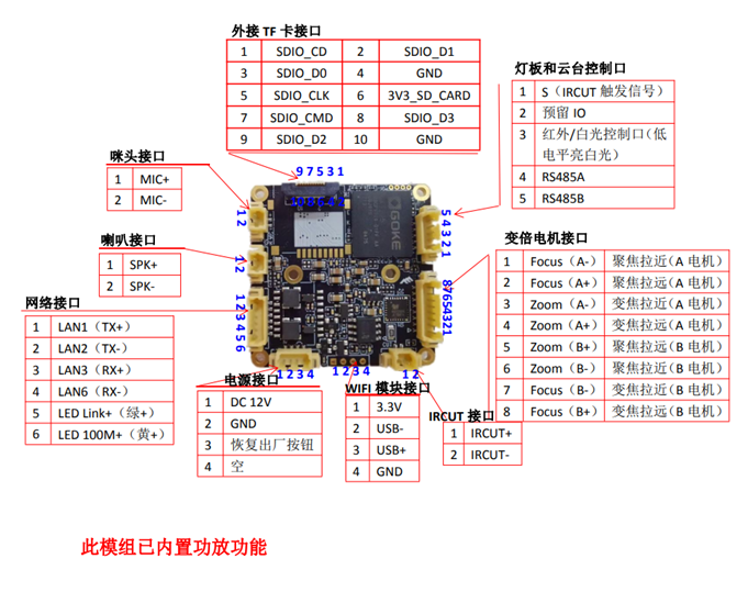 | 音频输入 | 1路输入,支持MIC输入/线性输入(需尾线支持) |